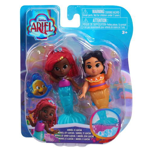 アリエルフィギュアセット アリエル&ルシア。アリエルとルシアのフィギュア 2体セットです。フィギュアの尾を水につけると色が変わり、動かして遊べます。サイズ アリエル 高さで約9.5cm Just Play 社製 正規ライセンス品