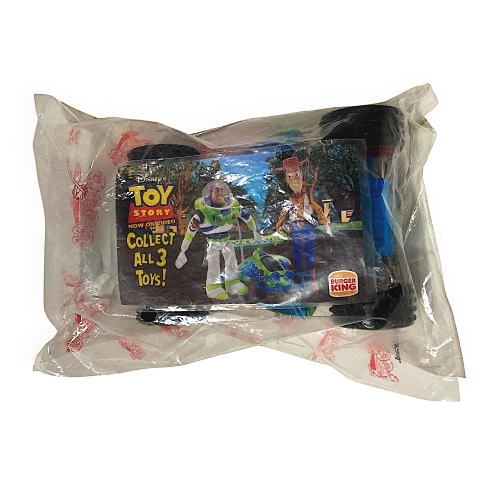 トイストーリー RCバギー バーガーキング。1995年のトイストーリービデオ発売記念でバーガーキングのキッズミールの景品として登場したミールトイです。サイズ 長さ約18cm 幅約12cm グッズコレクター向け商品 ※未開封の新品ですが30年の経過で袋は年式相応の状態です。