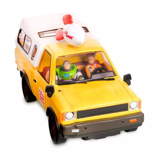 トイストーリー ピザ・プラネット・トラック プレイセット ライト&サウンド。車両左後部のボタンを押さえるとライトが点灯して音が鳴ります。ウッディとバズライトイヤーのフィギュアが付属。サイズ 長さ 20cm 幅 8.5cm 高さ 10.5cm USディズニーストア限定 正規ライセンス品